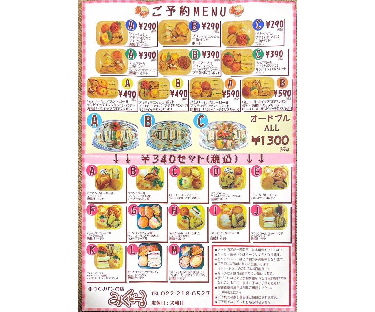 お家や職場でおいしいパンを楽しめる、ご予約のセットメニューも好評です。
